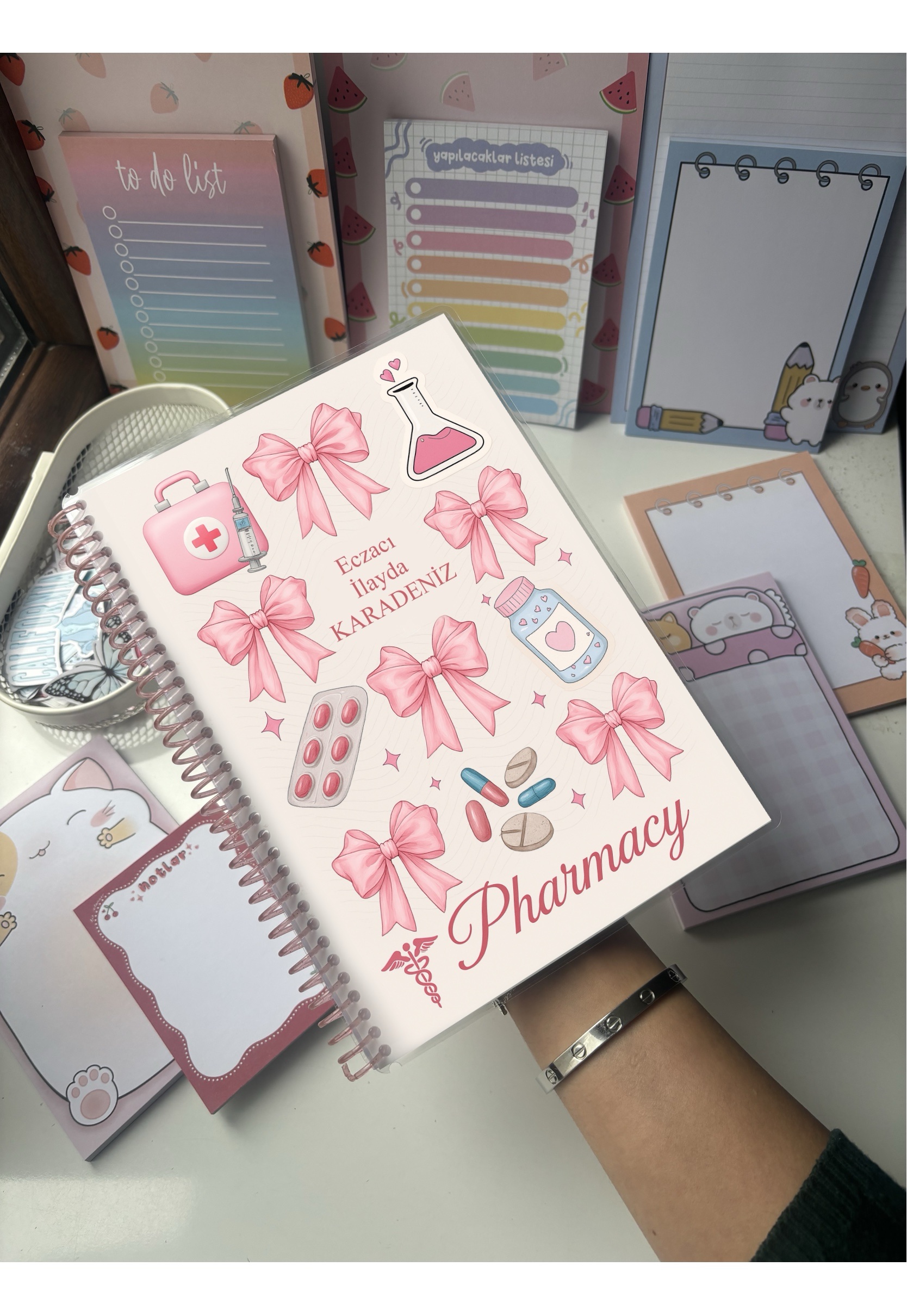 Defterlerimiz isme özel üretilmektedir, defterin üzerine yazdırmak istediğiniz ismi sipariş notunda belirtebilirsiniz. Örneğin ” ECZACI İLAYDA KARADENİZ ” veya sadece ” İlayda Karadeniz”